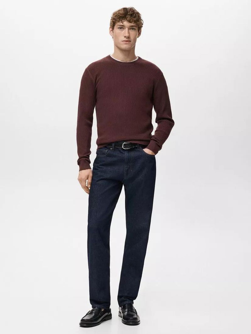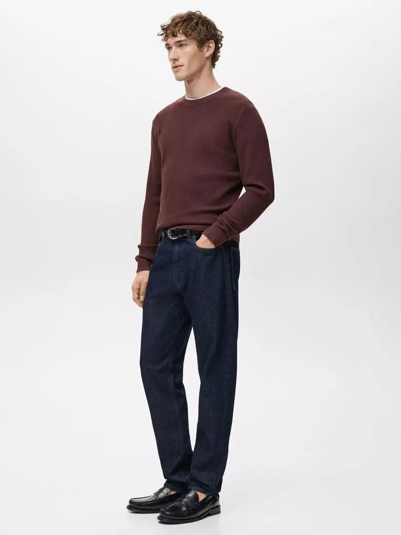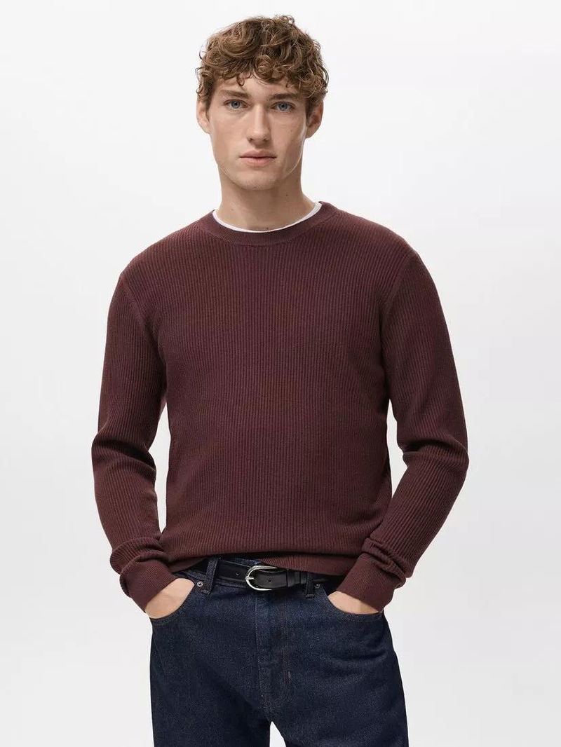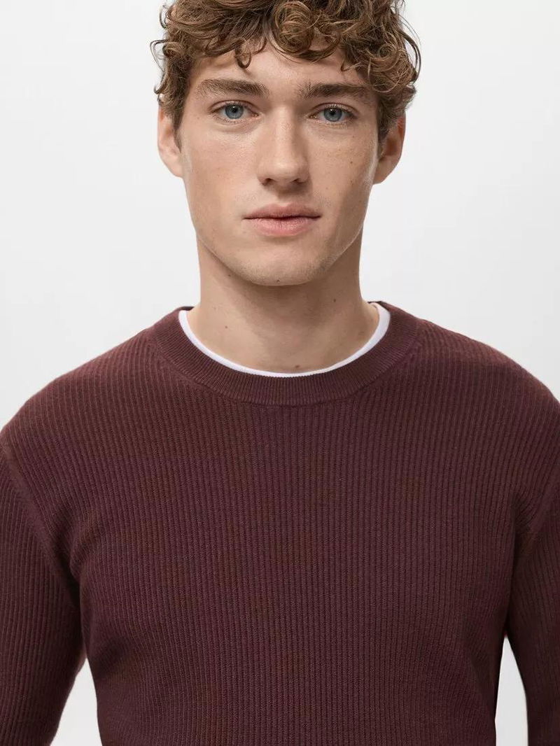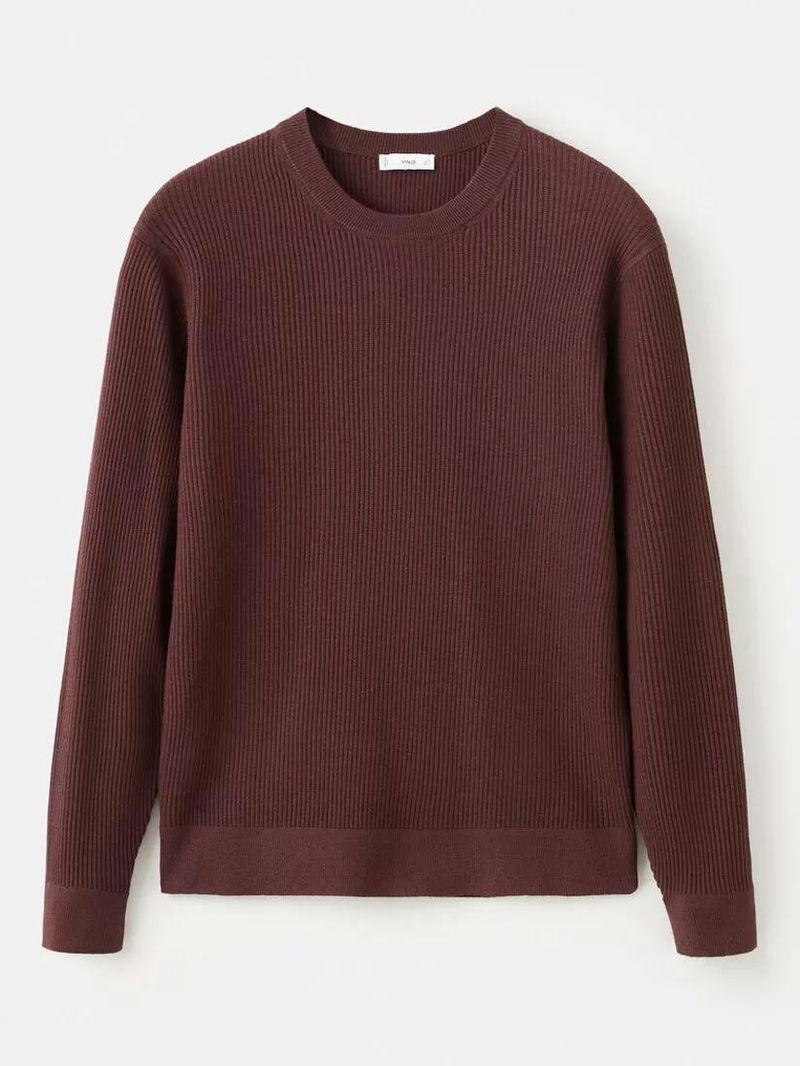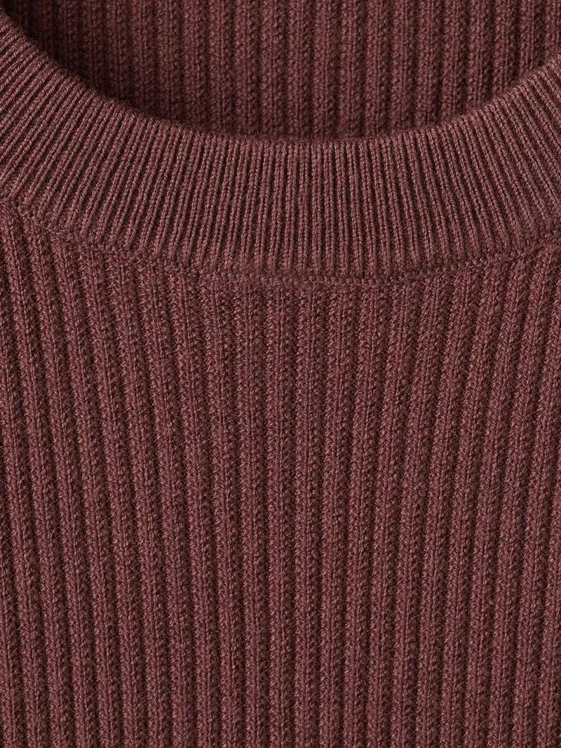 Ribbed Crew Neck Sweatshirt, Bordeaux