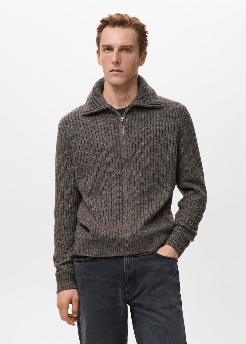 Ribbed-knit Cardigan With Zip