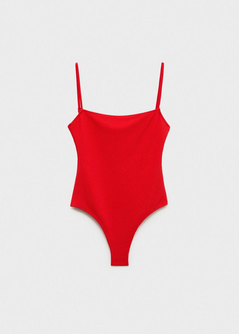 Ribbed knit. Low neckline. Thin straps. No Fastening. Inner lining.