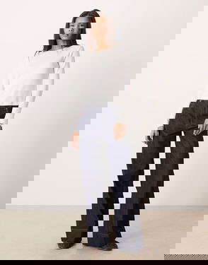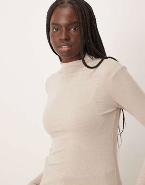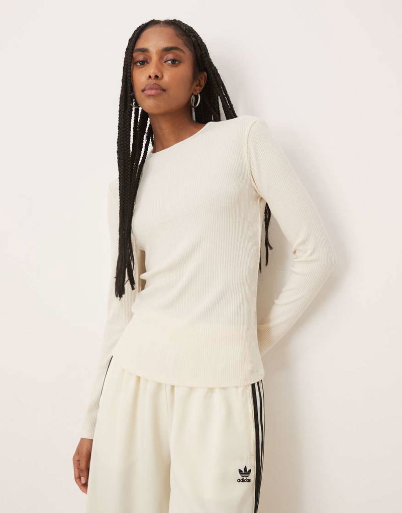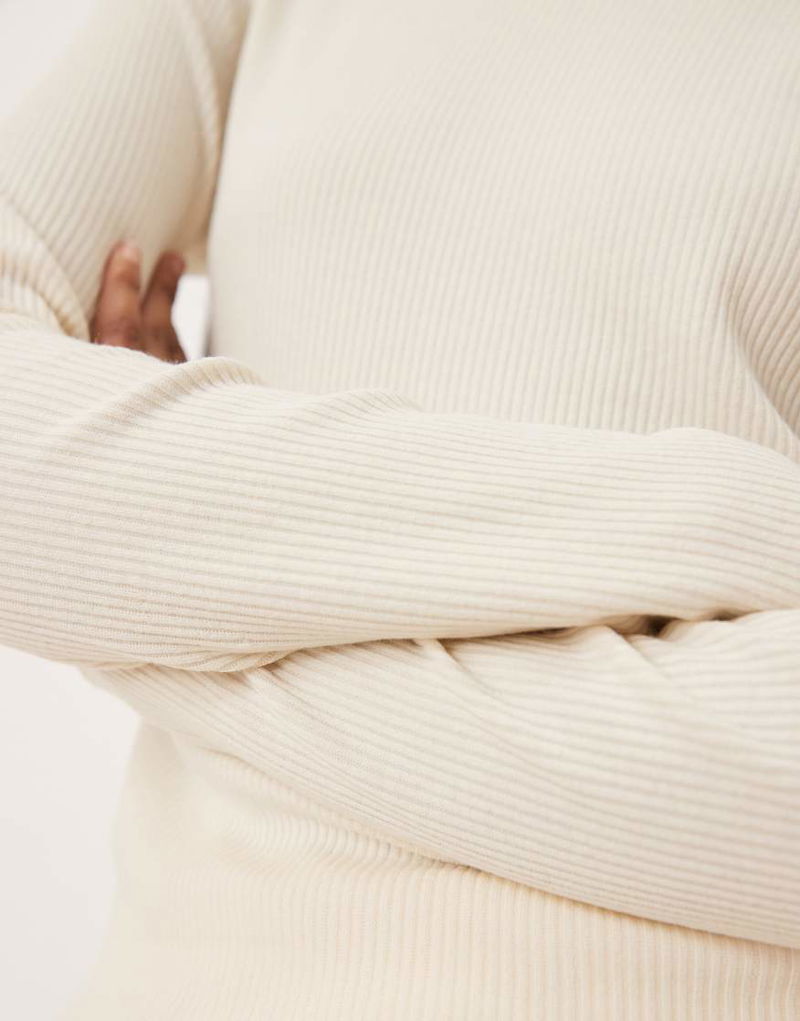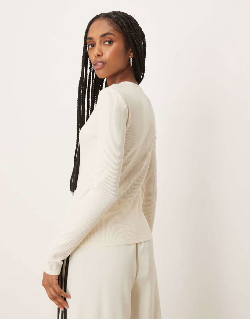 Ribbed Long Sleeve T-shirt In Cream
