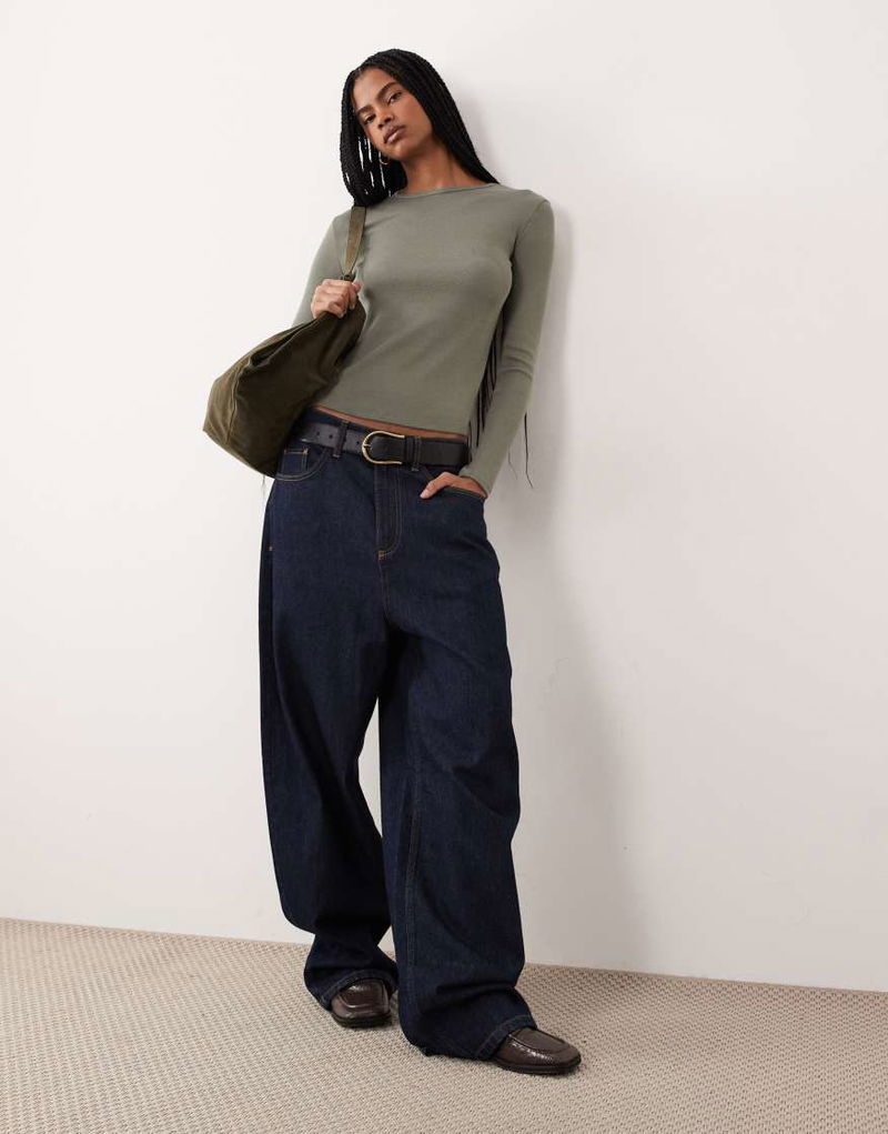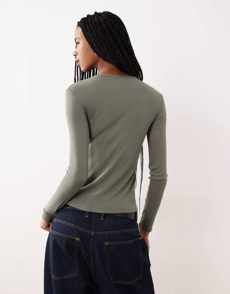 Ribbed Long Sleeve T-shirt In Khaki