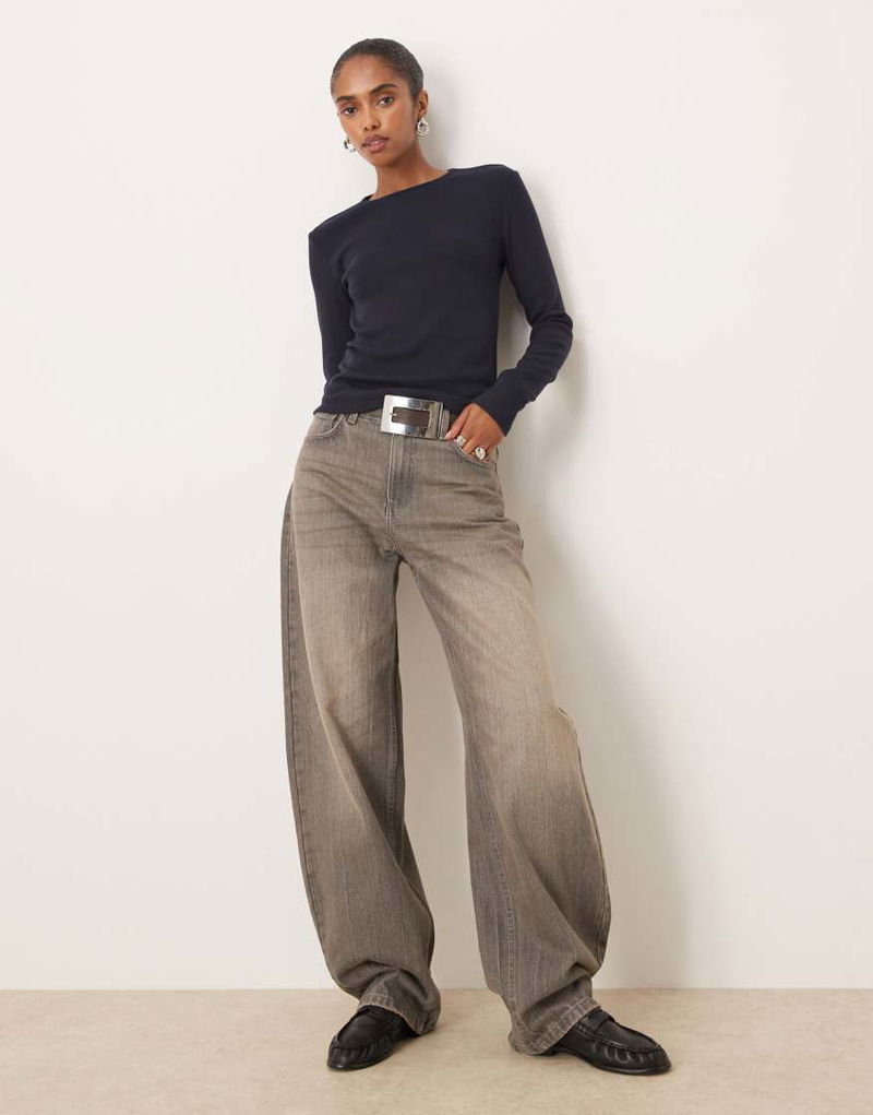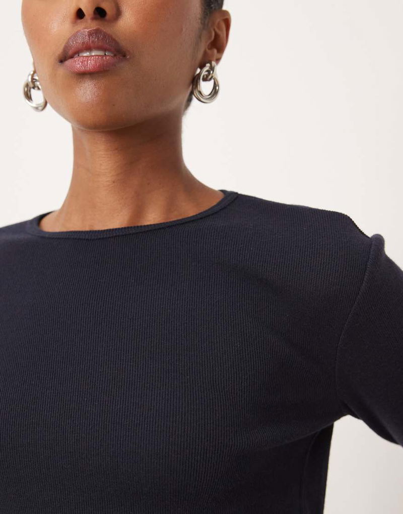 Ribbed Long Sleeve T-shirt In Navy