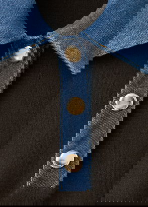 Online Exclusive, Rib knit fabric, Polo neck, Dropped shoulder seams, Long sleeve, Back length 25.0 in.