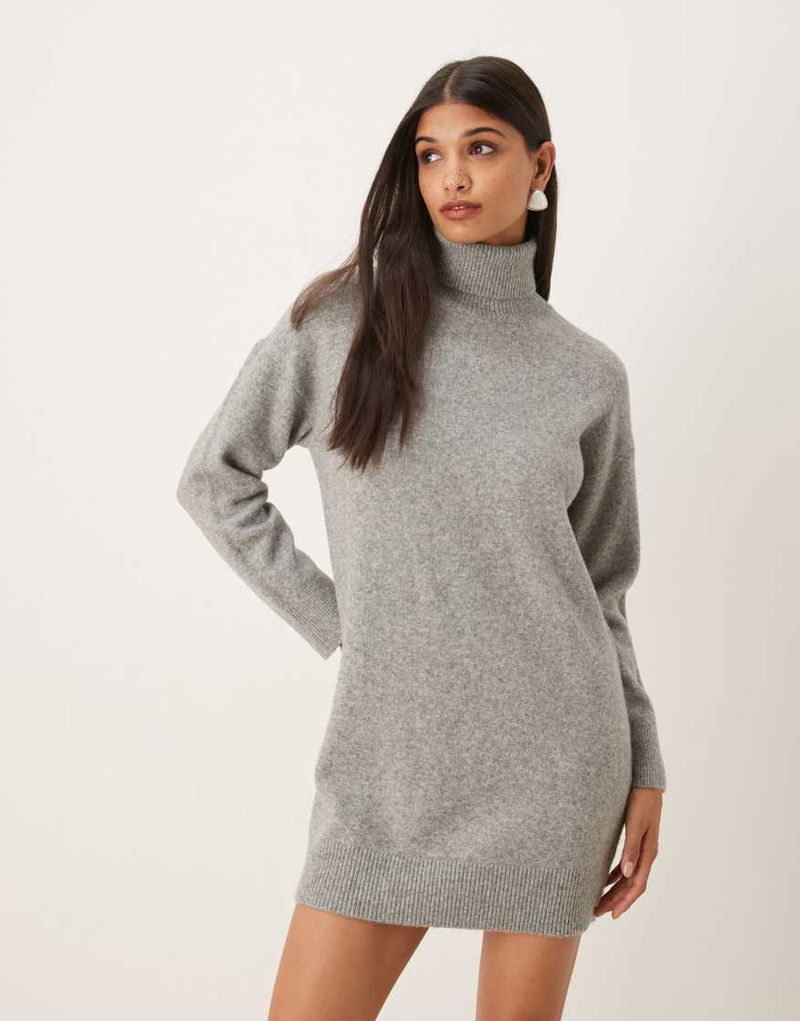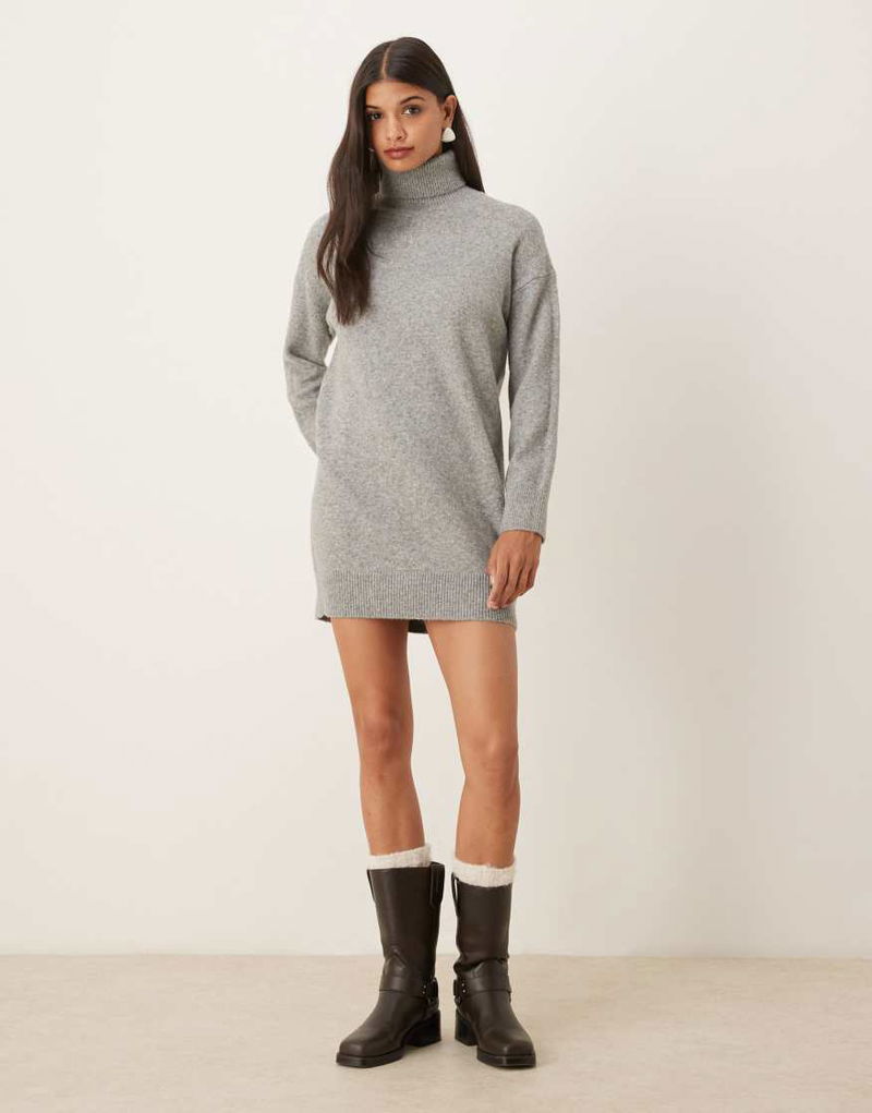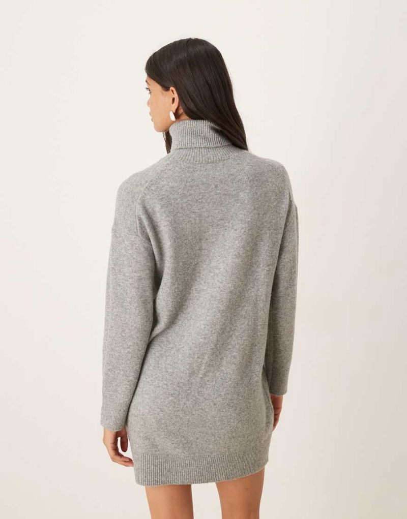 Roll Neck Knitted Mini Dress In Light Grey