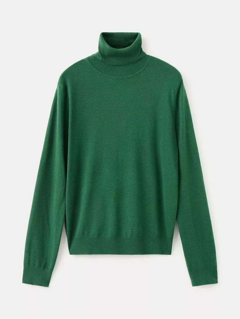 Roll Neck Slim Fit Jumper, Bottle Green