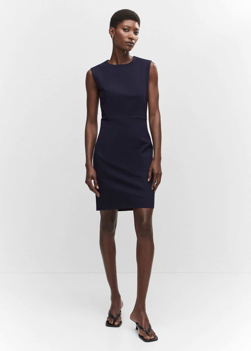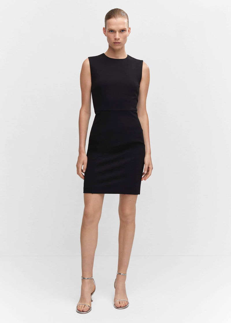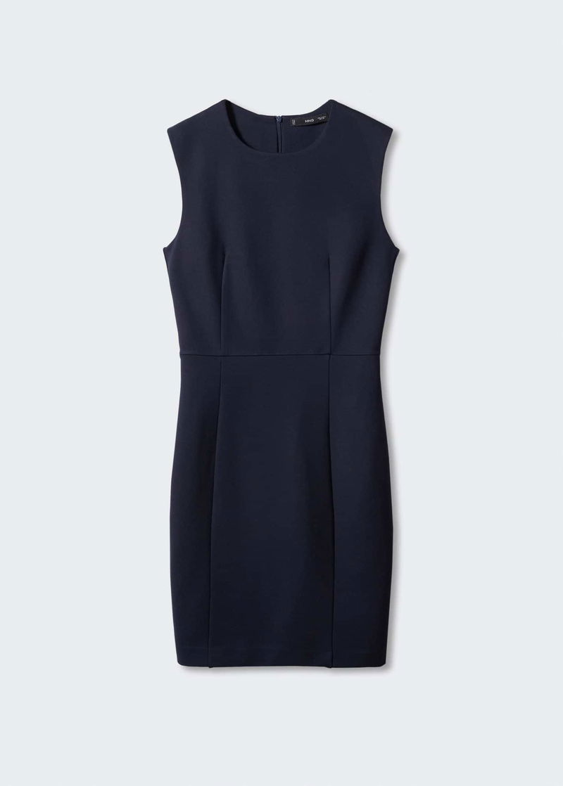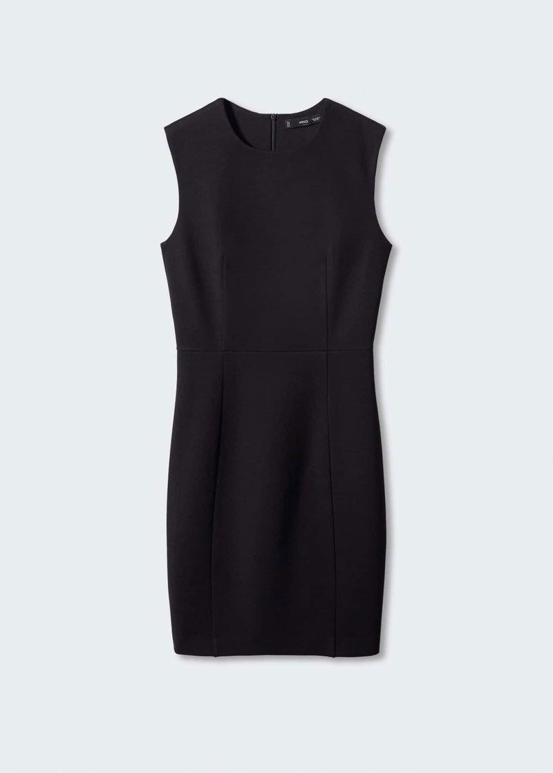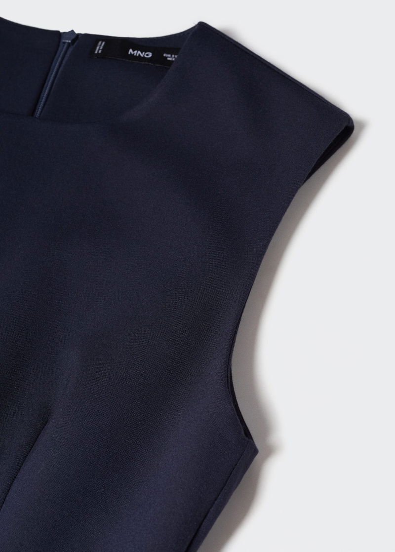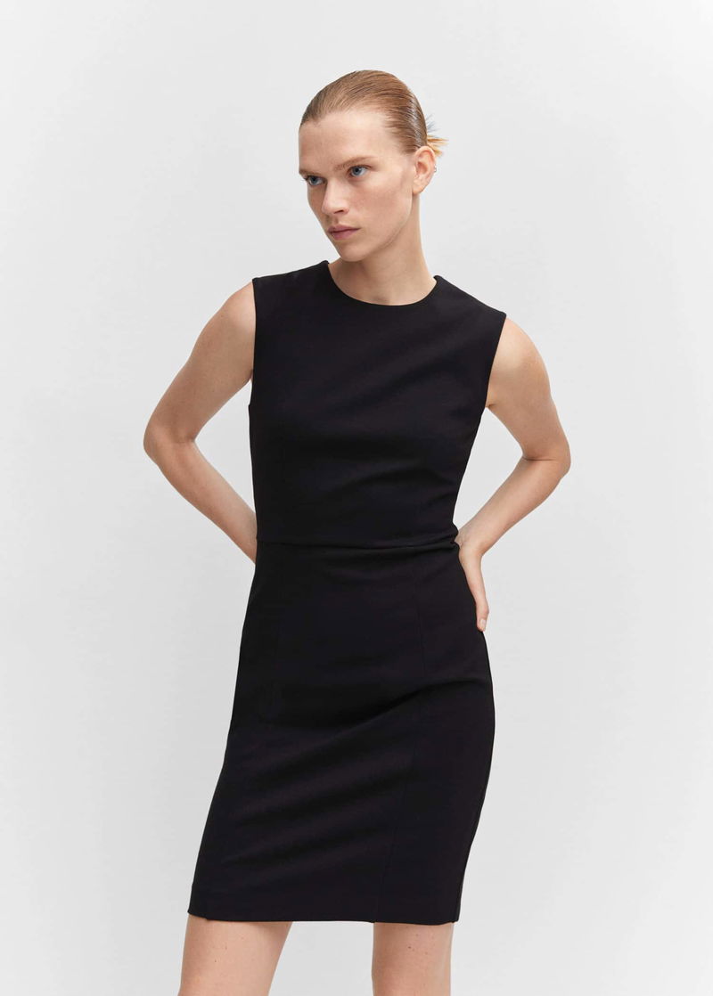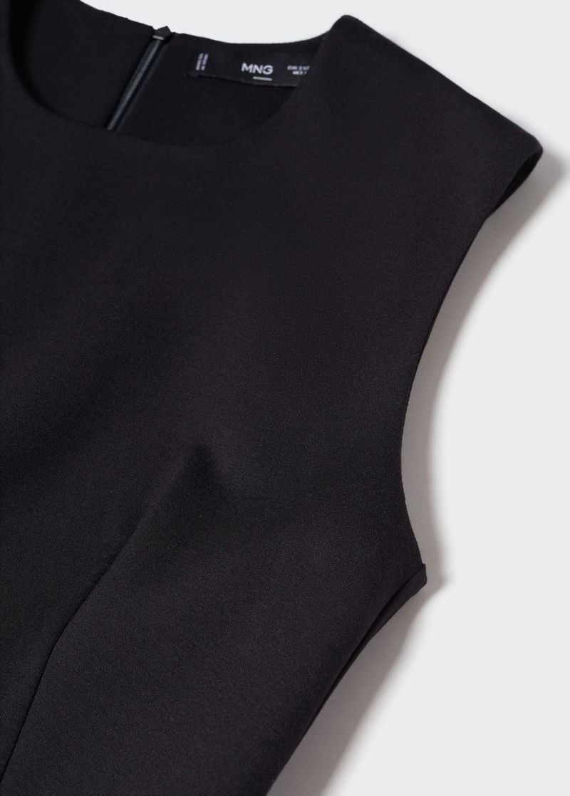 Punta di Roma knit fabric, Tailored design, Short design, Rounded neck, Sleeveless, Invisible back zip fastening, Inner lining.