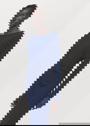 Product on sale. Short design. Fitted design. Draped neckline. Short sleeve. Side ruffles. Zip fastening on the back section. Inner lining.