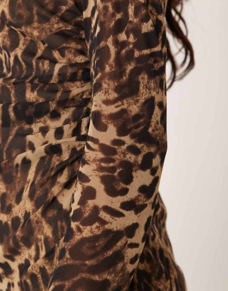 Ruched Side Long Sleeve Mini Dress In Leopard Print