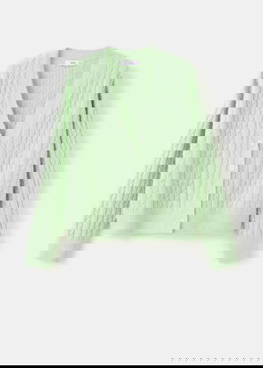 Crafted from medium-knit fabric, this straight design has a round neckline, long sleeves with ruffled cuffs and a ruffle on the hem. It fastens with buttons at the front