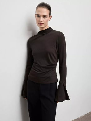 Committed Collection, Fine knit fabric, Elastic, Short design, Tailored design, Square neckline, Short sleeve, Sleeve with frill detail, Party and events collection.