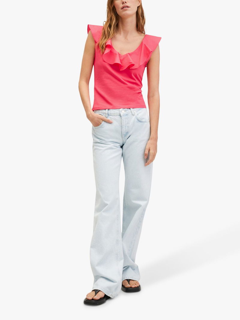 A faithful staple, this cami by Mango allows for endless styling opportunities. Framed with a v-neckline and a sleeveless design, it is made from a soft cotton blend and slips on well with tonal denim ready for the summer.
