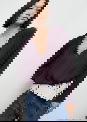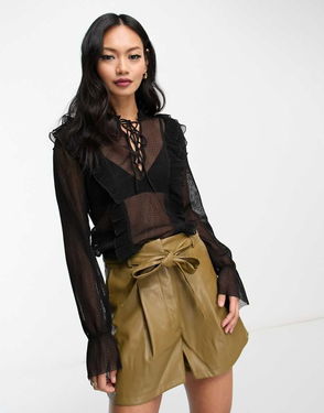 Frill detail, Light fabric, Lyocell fabric, Mao neckline, Button fastening on the front section, Pleated details, Long sleeve with elastic cuffs, Straight design.