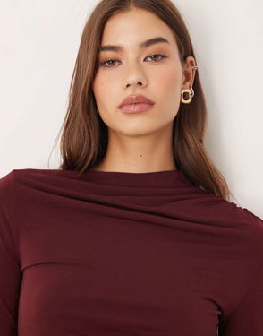 Satin High Neck Sleeveless Blouse In Burgundy