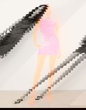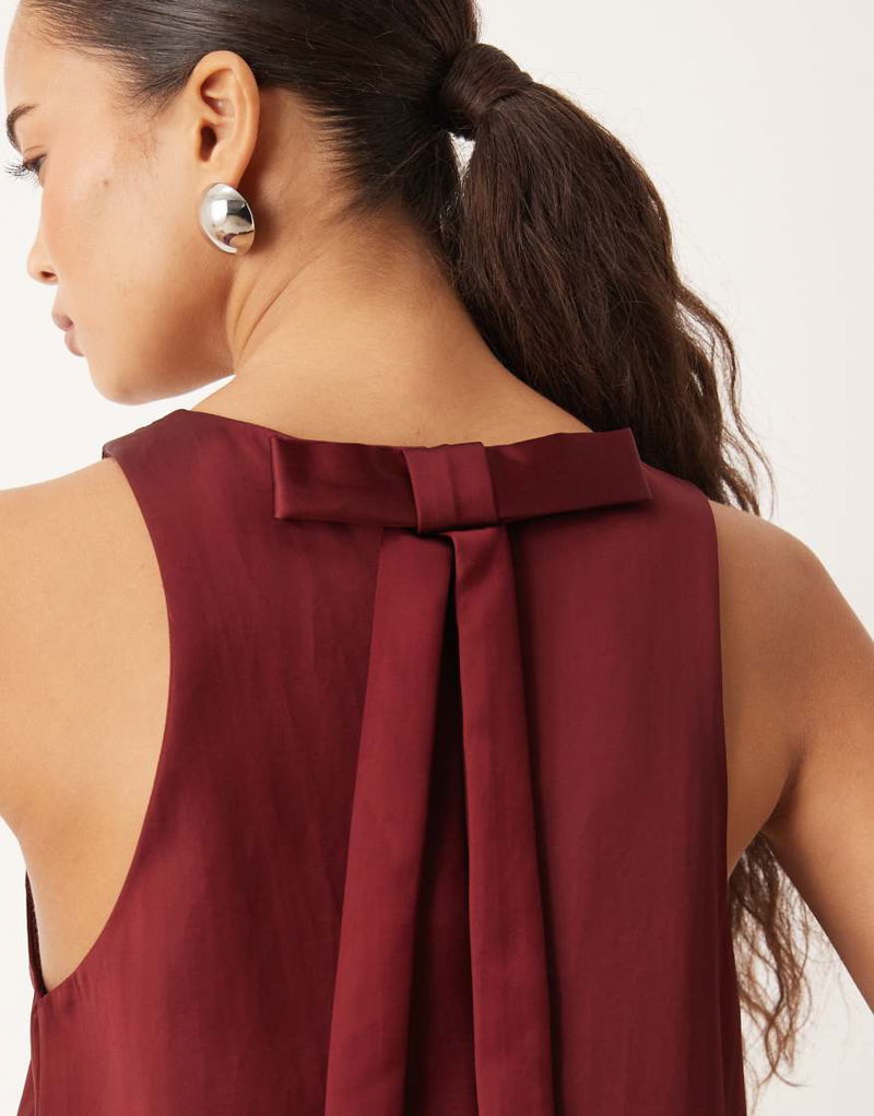 Satin Mini Shift Dress With Bow Back Detail In Cherry Red