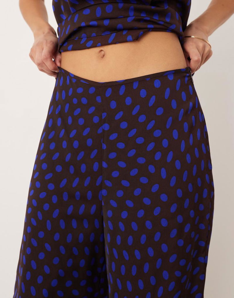 Satin Wide Leg Trouser Co-ord In Brown Polka Dot