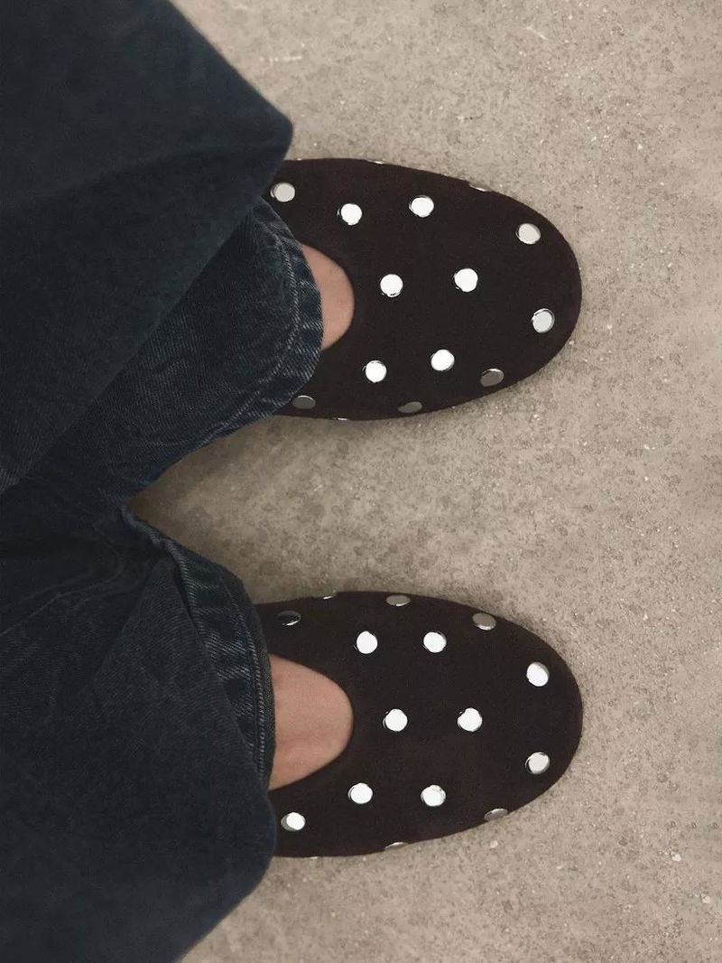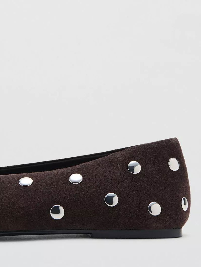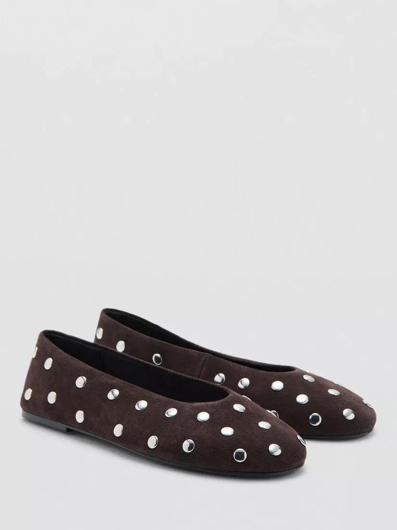 Savoir Suede Studded Ballerina Pumps, Dark Brown