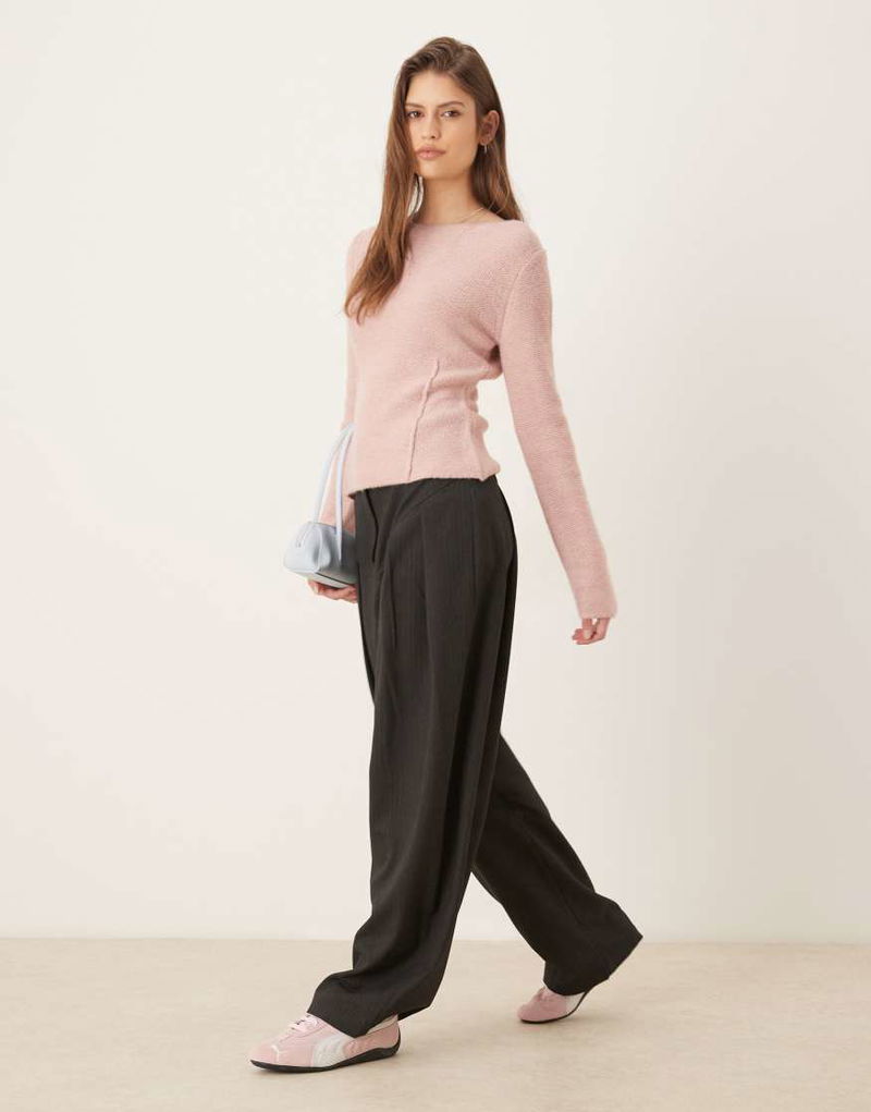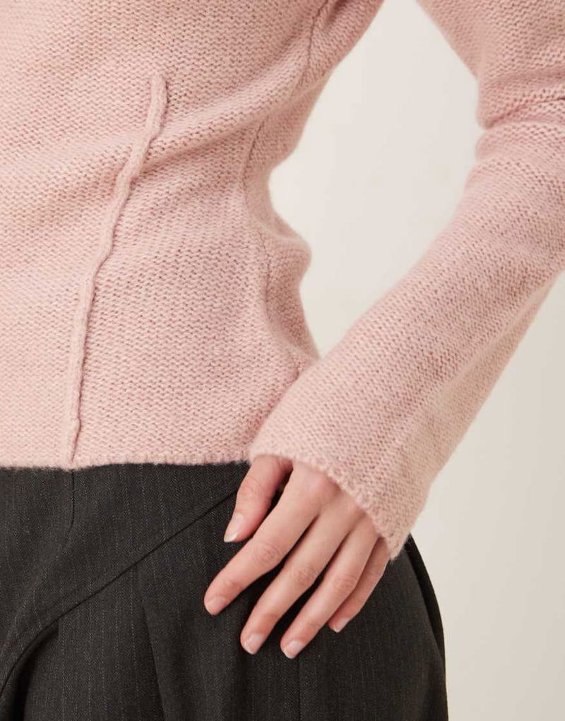 Seam Detail Lightweight Knitted Top In Pale Pink