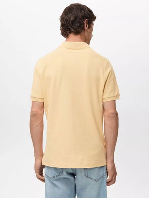 Straight silhouette. Seersucker effect. Polo shirt with buttonless collar. Short sleeve. Straight hem. Set available as total look.