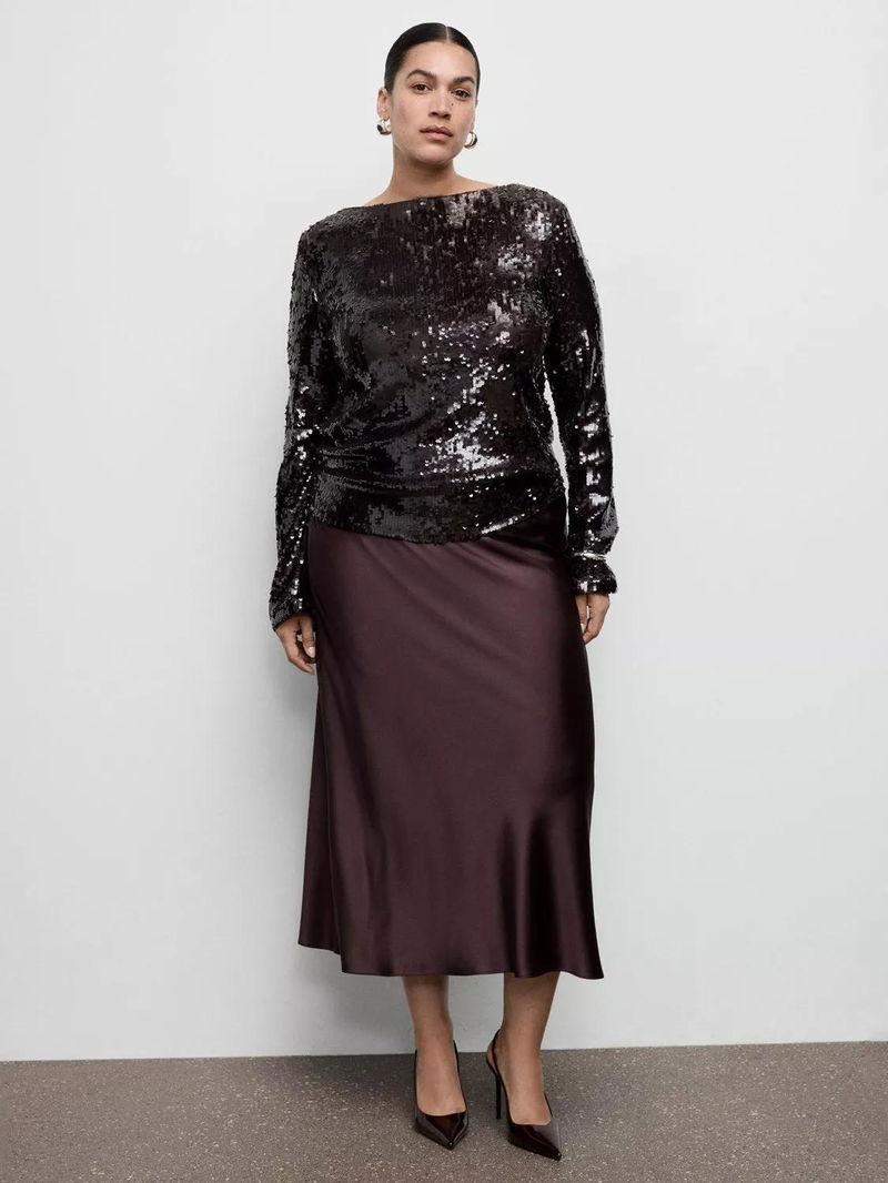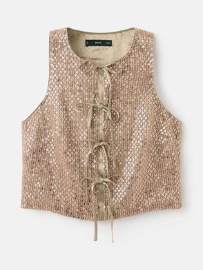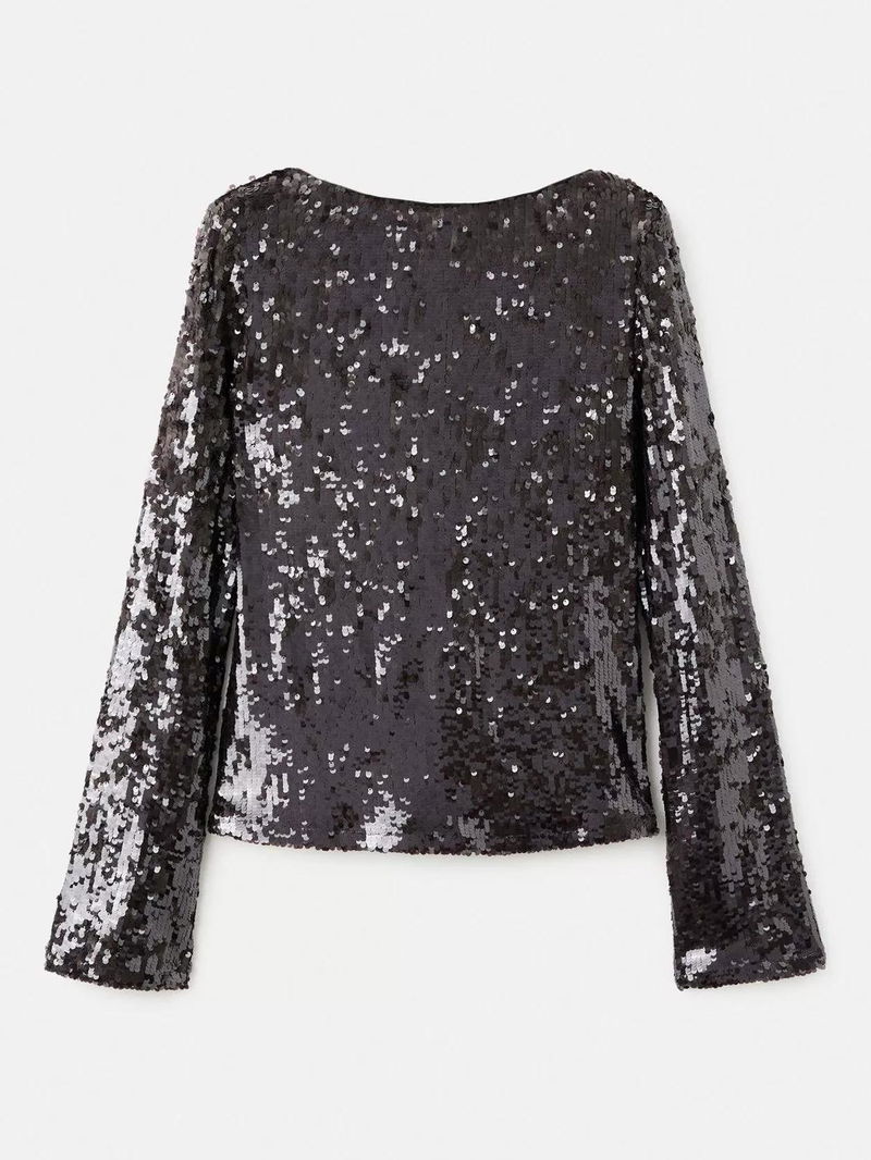 Sequin Bell Sleeve Top, Brown