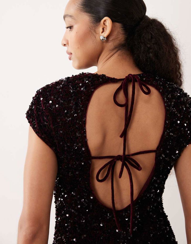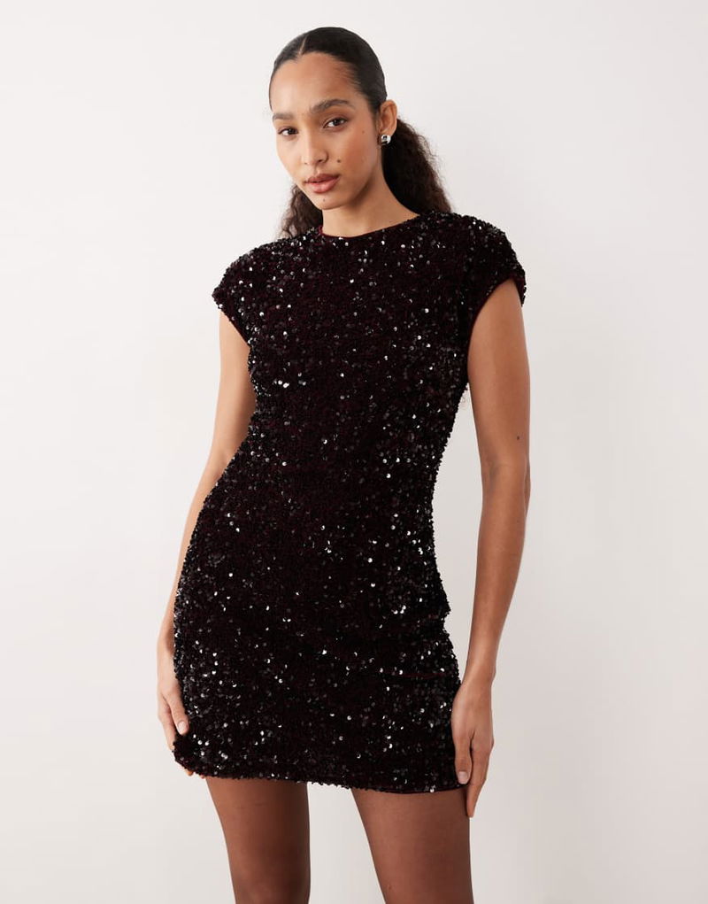 Sequin Cap Sleeve Mini Dress In Burgundy