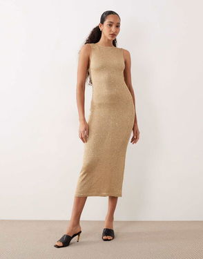 Knitted fabric, Sequin fabric, Long design, Straight design, Tailored dress, V-neck, Back neckline, Sleeveless, Thin straps, Unclosed, Flower details, Front slit.
