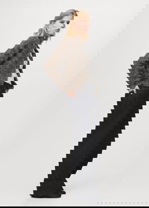 Denim-style cotton fabric. Sparkled fabric. Long design. Straight Design. Mid-rise. Belt loops. Five pockets. Zip and button fastening. Inner lining. Inseam 84 cm.