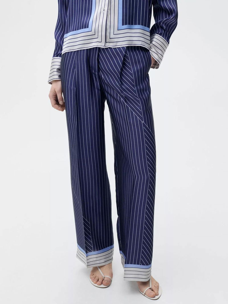 Step into the evening with trousers tailored for comfort and elegance. With subtle stripe detailing, this style is cut from satin and sit mid rise with a zip and concealed button fastening and longer length hems.