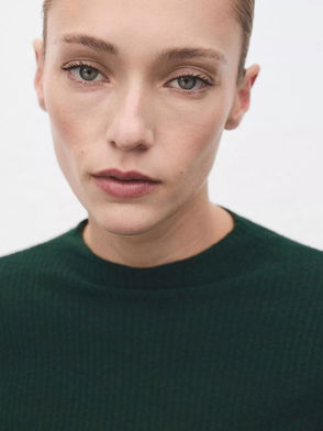 Short-Sleeved Fine-Knit Sweater