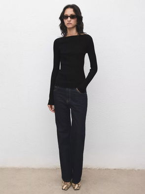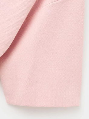 Fine knit fabric, Cable knit fabric, Straight design, Crew neck, Short sleeve.