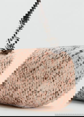 Small. Shoulder strap. Shoulder handle with adjustable knot. Flap closure with jewel button.