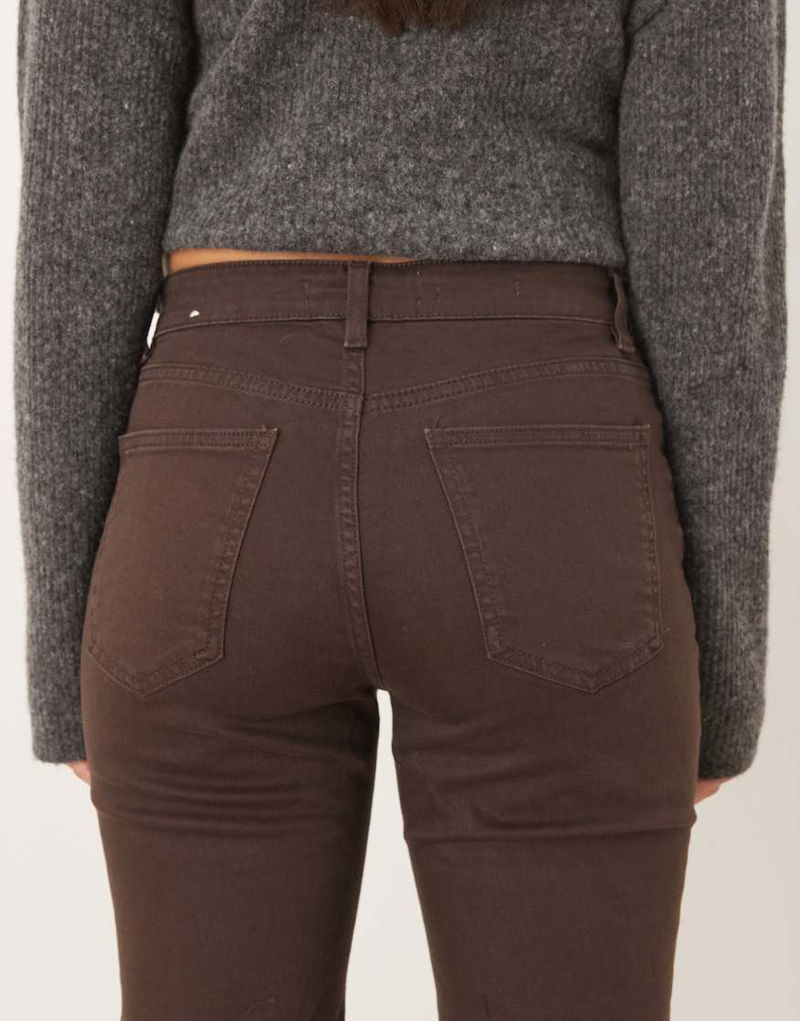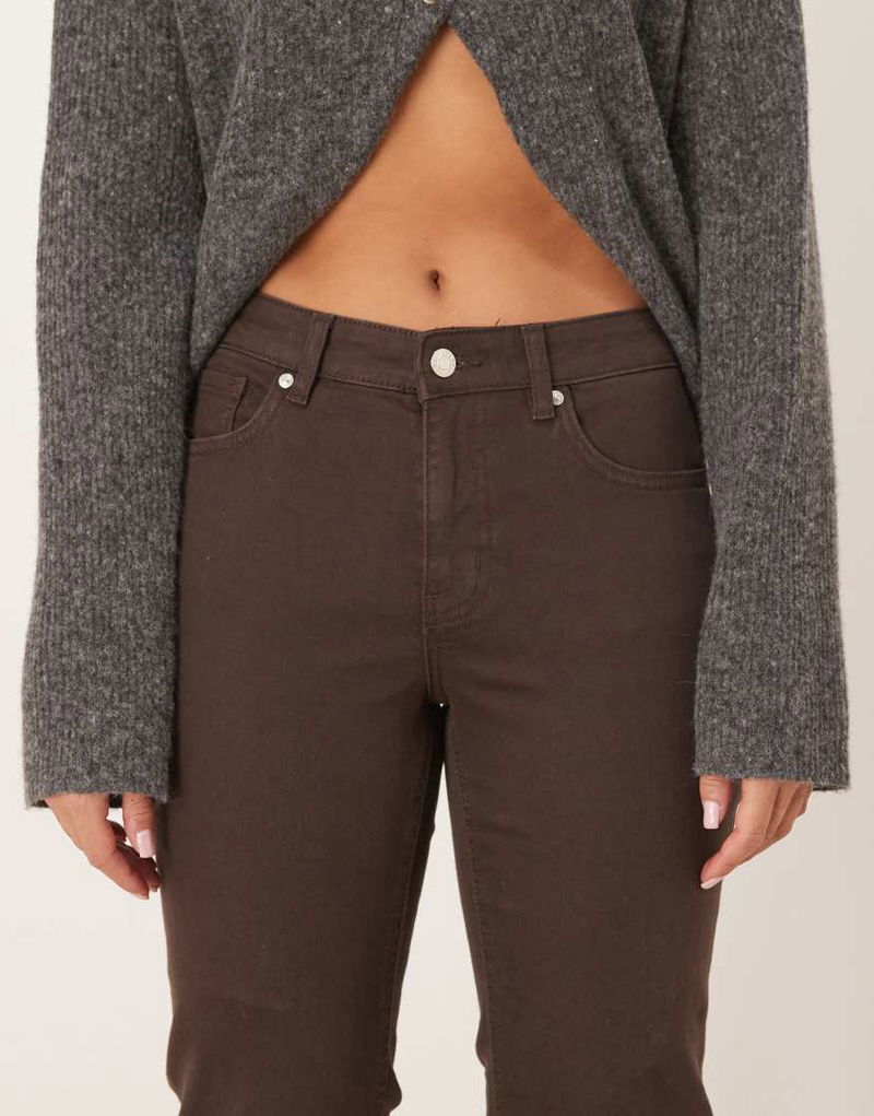 Sienna Cotton Mix Frayed Hem Kickflare Jean In Brown