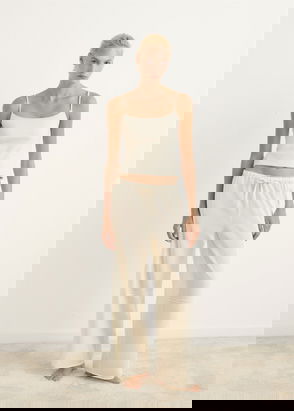 Silk-viscose blend fabric. Adjustable elasticated waistband. Long design. Velvet fabric. Straight Design. Pleasant and soft texture. Available in various colours. Coordinates with more products from the collection.