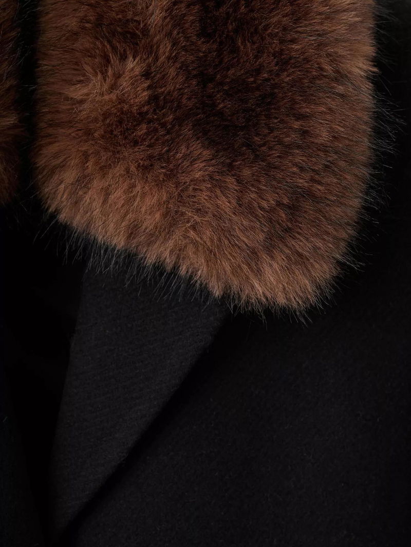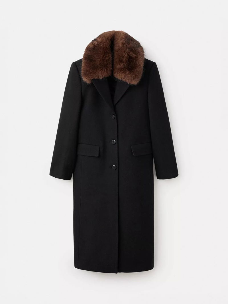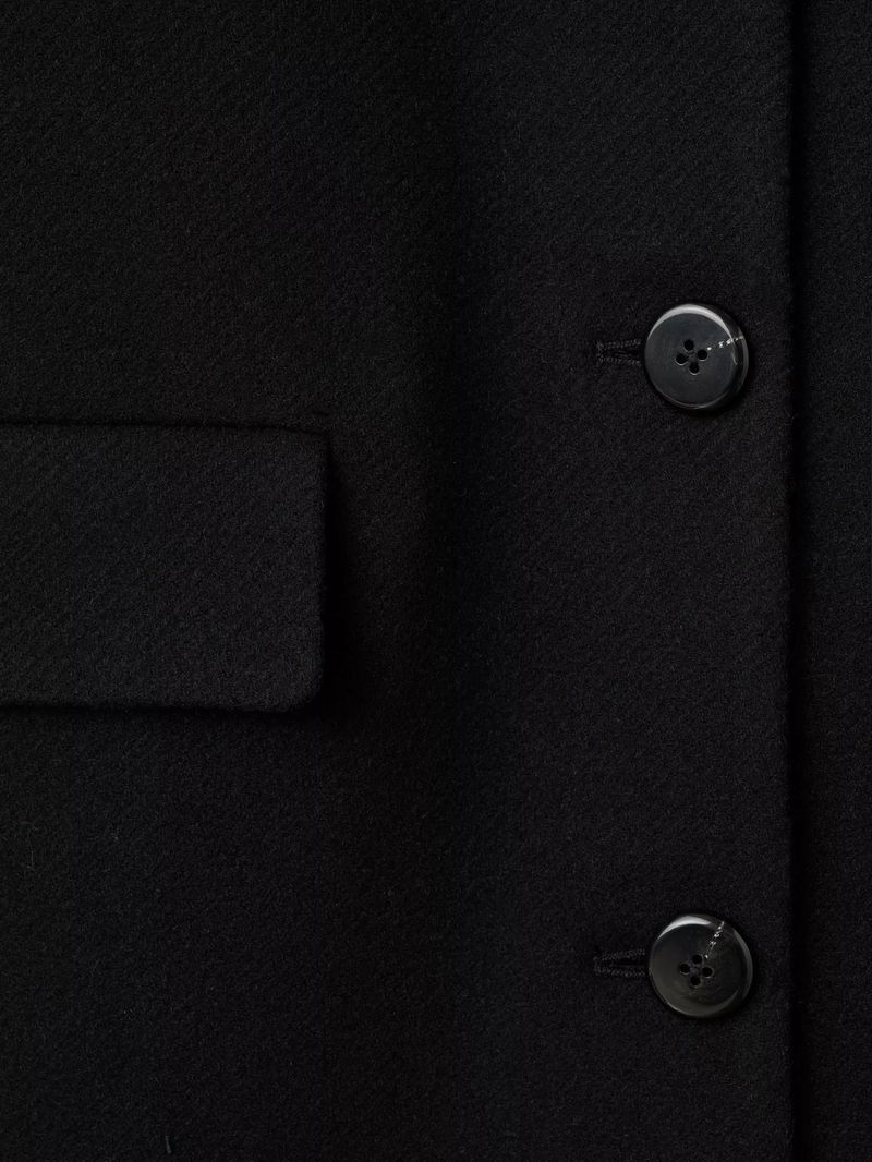 Single Breasted Longline Wool Blend Overcoat, Black