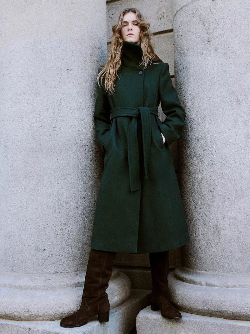 Sirenita Funnel Neck Wool Rich Coat, Green