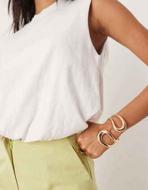 Plain design. High neck. Sleeveless style. Peplum hem. Regular fit.