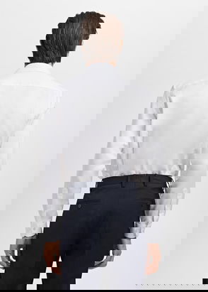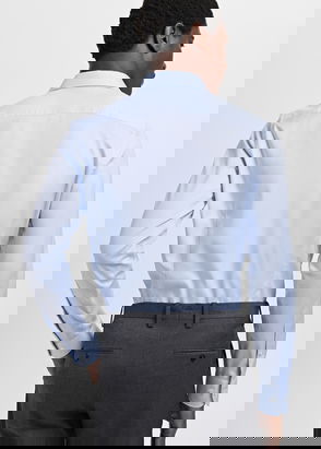 Slim fit. Cotton blend fabric. Shirt Collar. Button up. Long sleeves with buttoned cuffs.