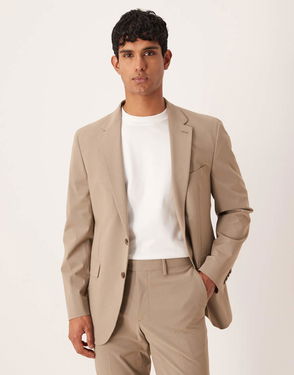 Slim fit, Cotton and linen mix, Peaked lapel, Structured shoulders, Welt pocket on the chest, Long sleeve with buttoned cuffs, Two side pockets with flaps, Back slits, Two buttons fastening, Inner pockets.