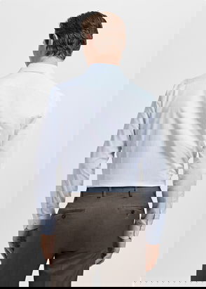 Casual line, Stripped fabric, Cotton and linen mix, Slim fit, Classic collar, Long sleeve with buttoned cuffs, Button fastening on the front section, The excellent qualities of this natural fibre, such as its lightness and breathability, make this fabric particularly suitable during warm weather. Elegant and comfortable as well, this garment is a perfect choice.