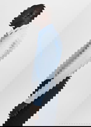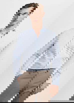 Slim fit. 100% cotton fabric. Classic collar. Fabric with microstructure. Spread collar. Front closure with buttons. Buttoned cuffs. Rounded base. Long sleeves with buttoned cuffs. Standard Length. Long Sleeve. Lightweight Flat Structure. Slim Silhouette. Front Closure Location. Neck lapel Cutaway.