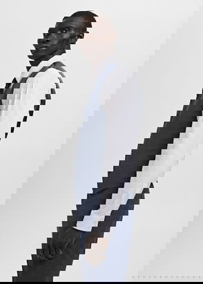 Slim fit. Short design. V-neck. Sleeveless. Front closure with buttons. Two pockets with flaps on the front. Adjustable buckle on the back. Inner lining. Inner pocket.
