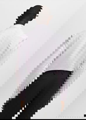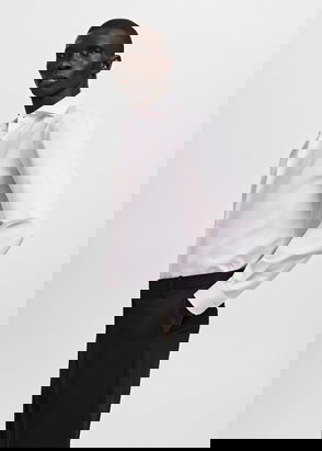 100% cotton fabric. Spread collar. Print Stripped Poplin. Front closure with buttons. Long sleeve with buttoned cuffs. Rounded base.