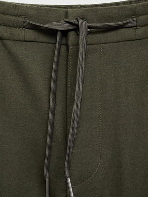 Slim fit, Linen and cotton mix, Double button and zip closure, Elastic waist with adjustable drawstring, Lanyard with option of visible or hidden knot on the inside, Detail of front calipers, Two front pockets, Two welt pockets on the back, Straight hem.