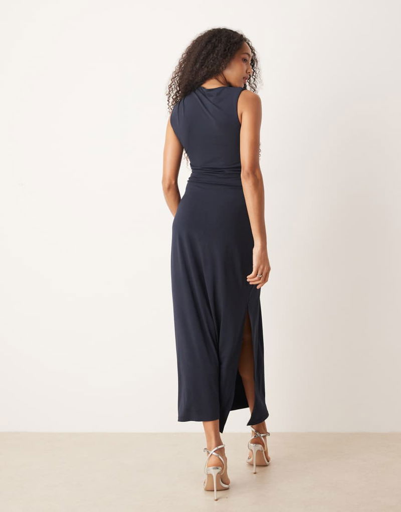 Slinky Maxi Dress With Twist Shoulder And Hardware Detail In Navy