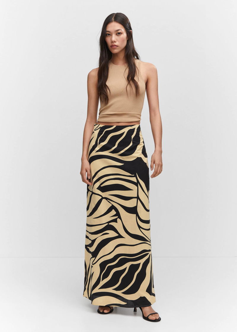 100% cotton fabric, Flowy fabric, Abstract-print, Long design, Straight design, Invisible lateral zip fastening, Inner lining, Co-ord.