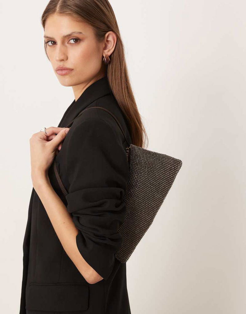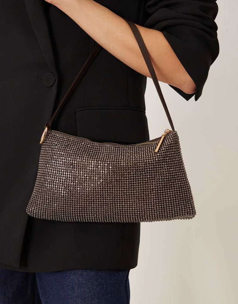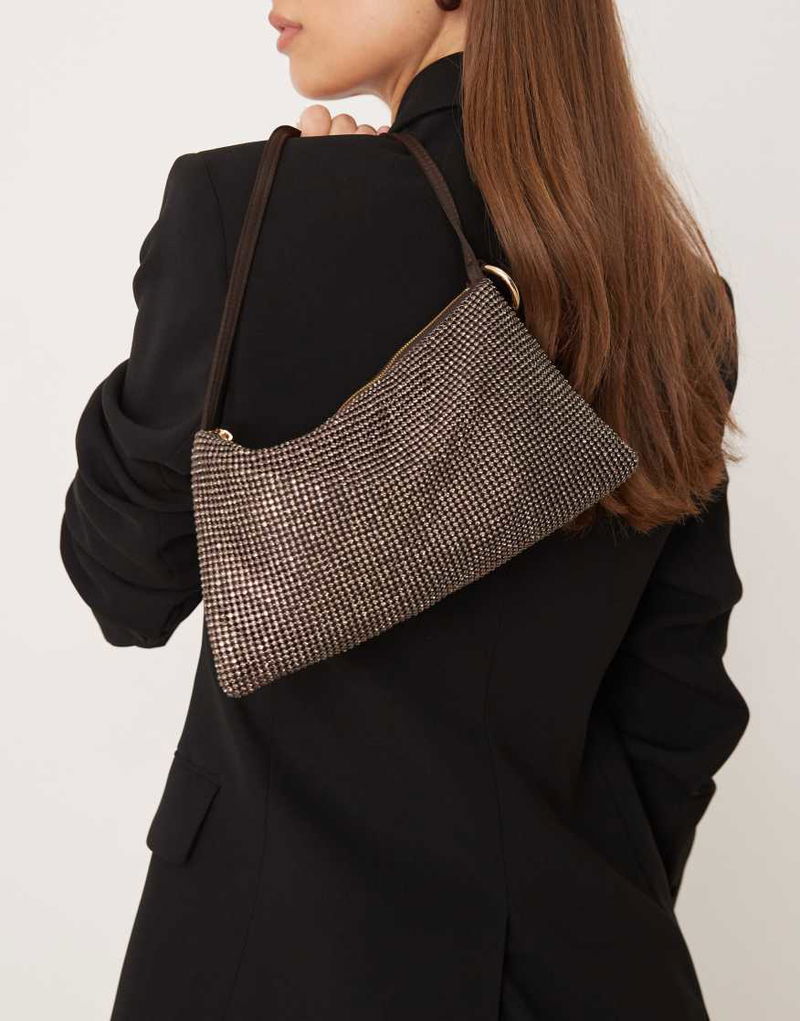 Slouchy Diamante Shoulder Bag In Gold
