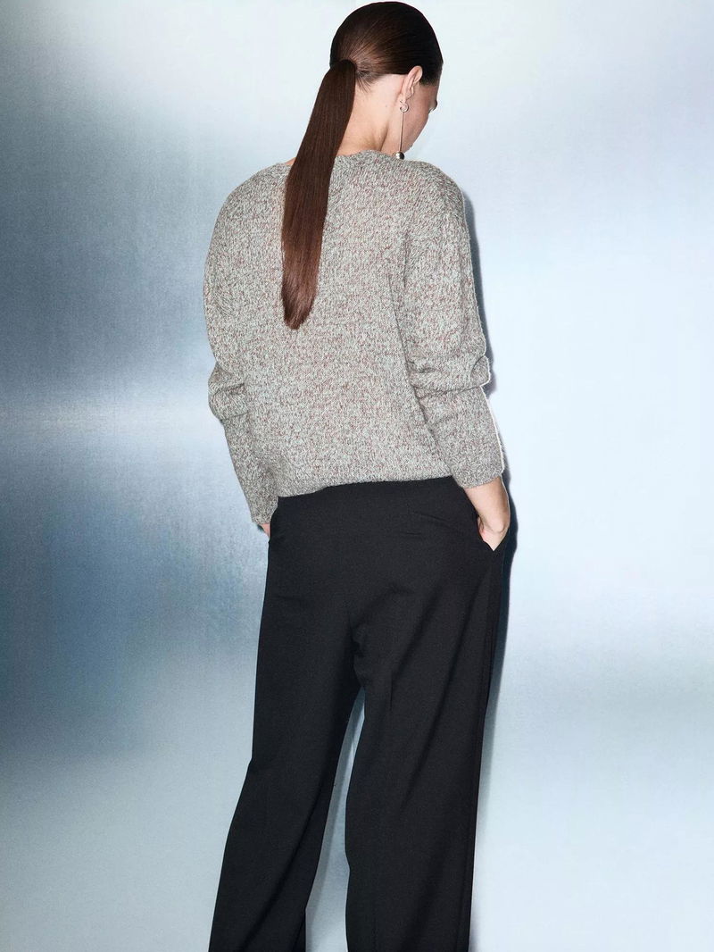 Speckled Lurex Knitted Wool Blend Sweater, Pastel Blue