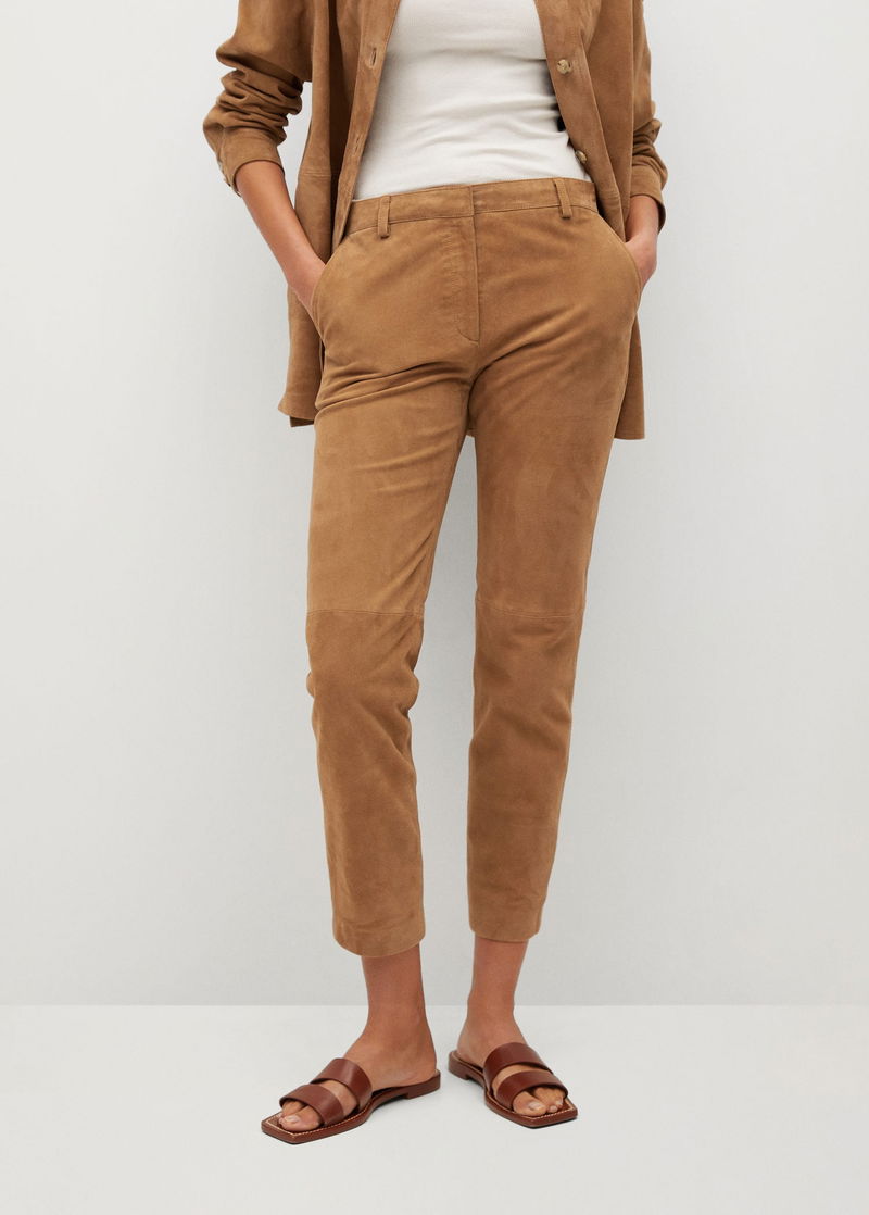 Straight design, Ankle design, Medium waist, Loops, Side pockets, Welt pocket on the back, Zip and hook fastening, Inner lining.