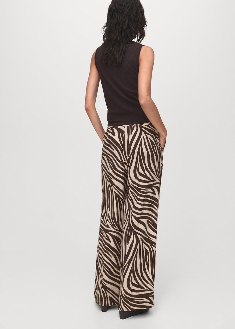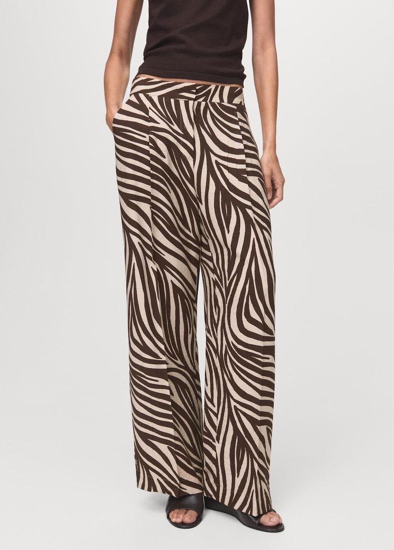 Straight-leg Zebra-print Pleated Trousers