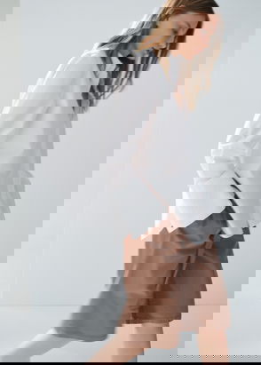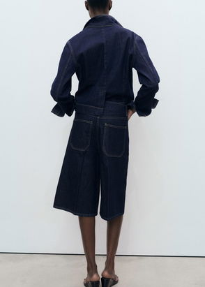 Denim-style cotton fabric. Jort design. Straight design. Medium waist. Belt loops. Jeans with tie closure. Zip and button fastening.