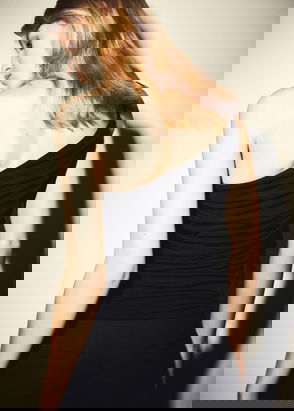 100% cotton fabric. Crop design. Ruffle design. Strapless. Sleeveless. Zip fastening on the back section. 100% cotton inner lining. Total look.